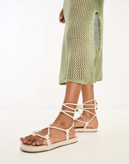 Stradivarius - Sandalen van touw in beige
