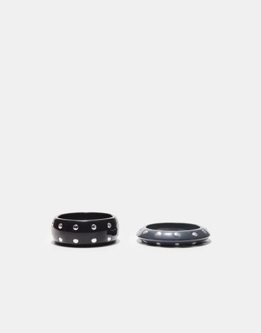 Stradivarius - Set van 2 armbanden met studs in zwart