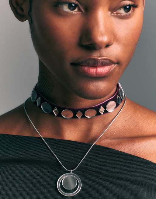 Stradivarius - Set van 2 choker kettingen met fluweel in grijs