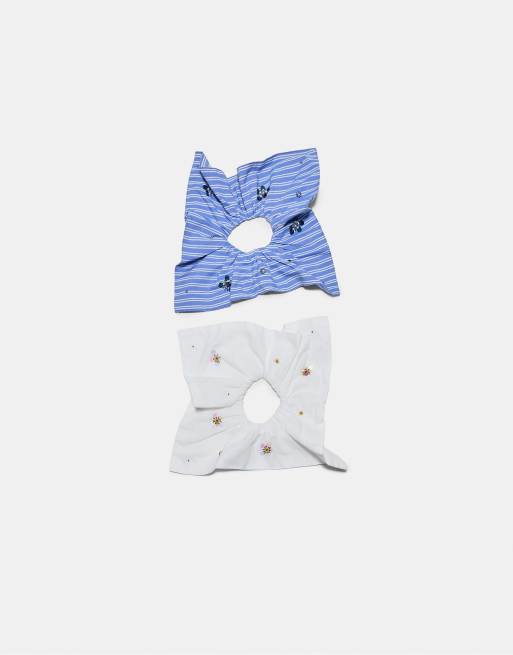 Stradivarius - Set van 2 geborduurde scrunchies in koningsblauw