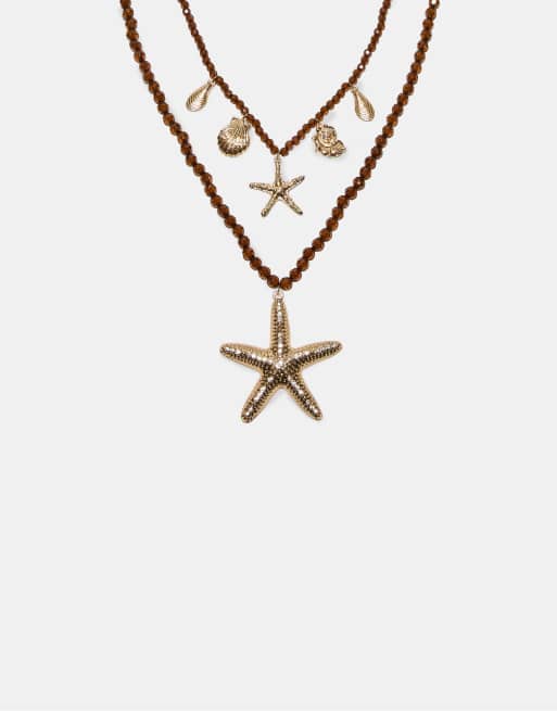 Stradivarius - Set van 2 kralenkettingen met zeesterren in goud