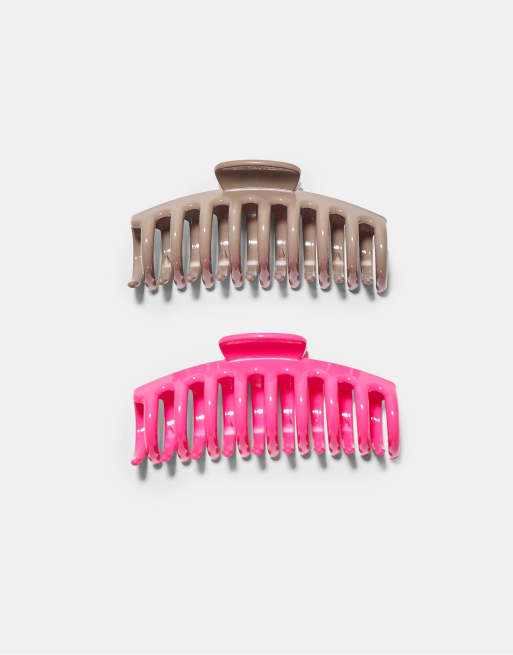 Stradivarius - Set van 2 zachte maxi haarclips in neonroze