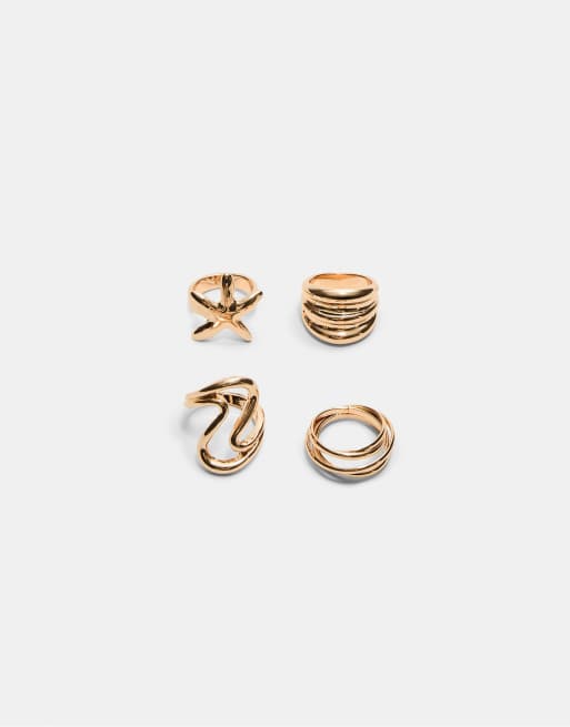 Stradivarius - Set van 4 ringen met ster in goud