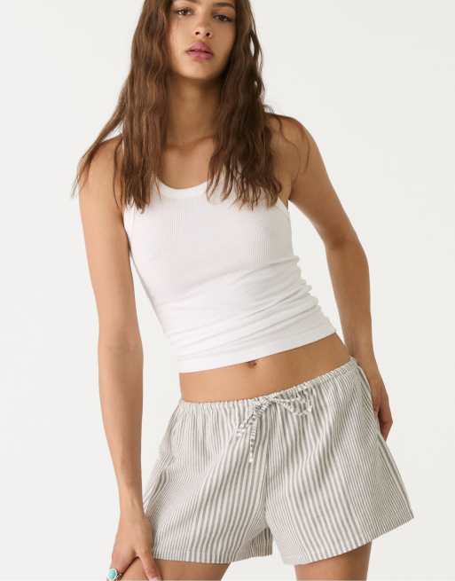 Stradivarius - Shorts van linnenmix met ruiten in grijs