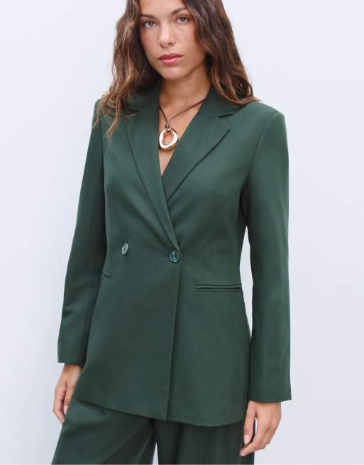Stradivarius - Slim-fit double breasted blazer in groen