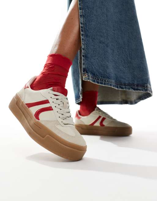 Stradivarius - Sneakers met dikke zool in beige en rood