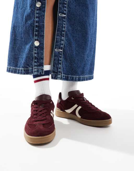 Stradivarius - Sneakers van leer met gumzool in bordeauxrood