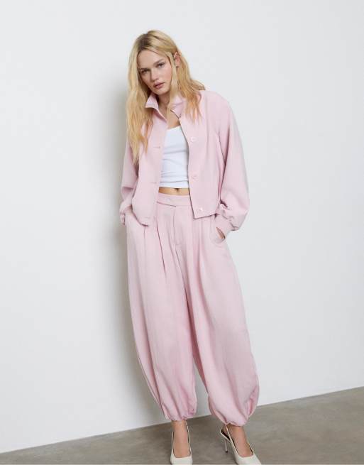 Stradivarius - Soepelvallende geplooide co-ord set in roze