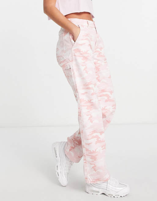 Stradivarius STR - Cargobroek met wijde pijpen in roze camouflageprint