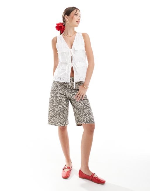 Stradivarius - STR - Denim dad short met luipaardprint