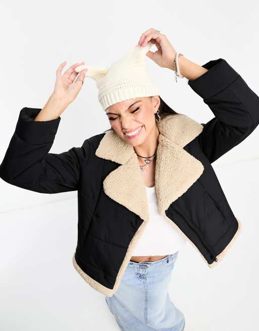 Stradivarius - STR - Gewatteerd pilotenjack met contrasterende voering in zwart
