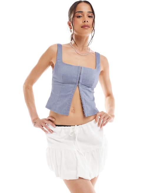 Stradivarius - STR - Mini rok met ruches en stroken in wit