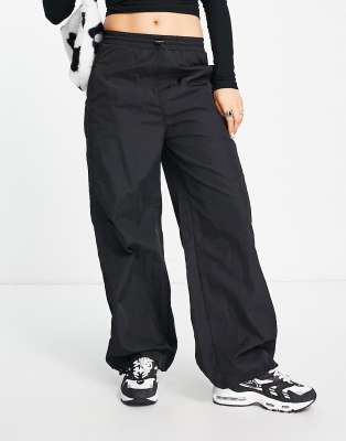 Stradivarius - STR - Parachute broek van nylon in zwart