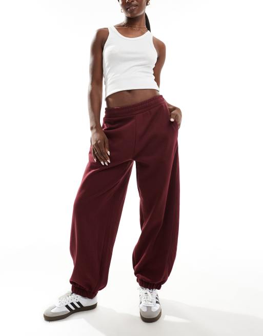 Stradivarius - STR - Ruimvallende joggingbroek in bordeauxrood