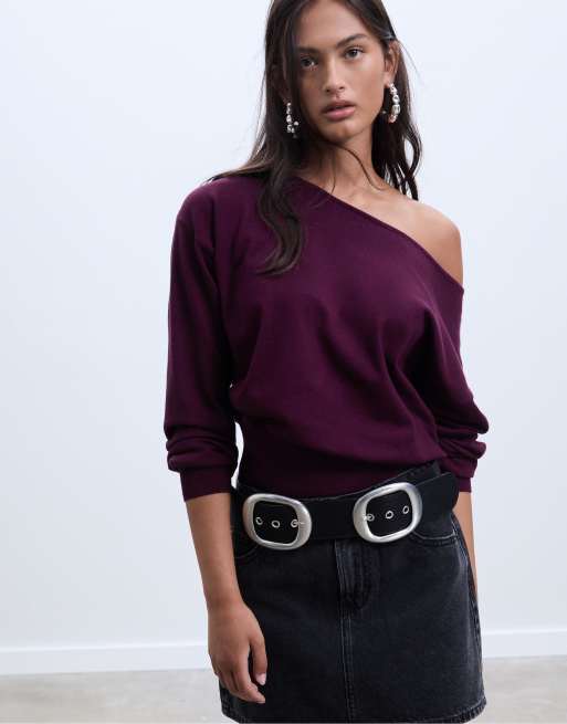 Stradivarius - Sweater met boothals in aubergine