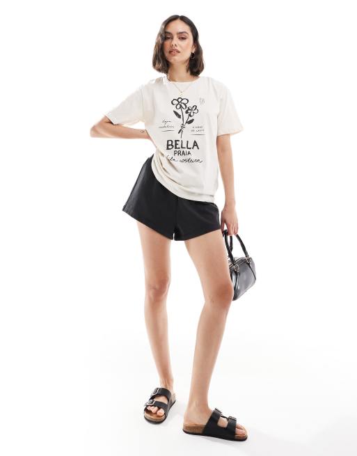 Stradivarius - T-shirt met 'Bella Praia'-print in beige