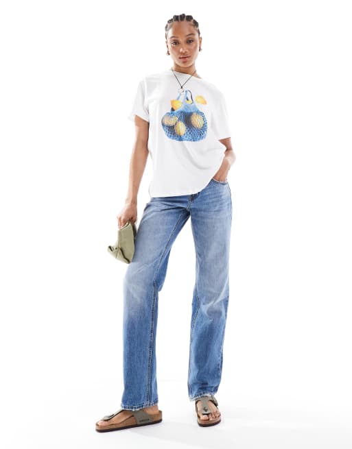 Stradivarius Tall - D03 - Jeans met rechte pijpen en lage taille in middenblauw wassing