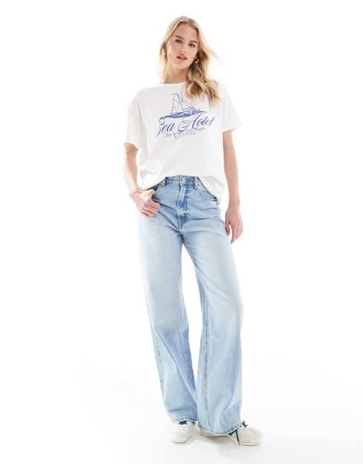 Stradivarius Tall - D88 - Baggy jeans met rechte pijpen in middenblauw