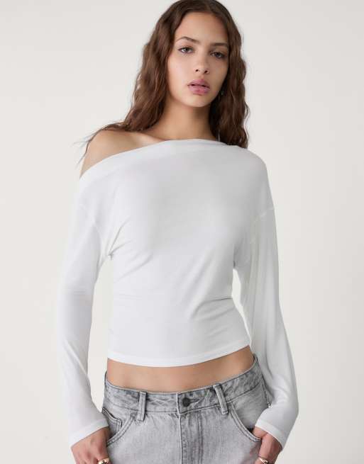 Stradivarius - Top met asymmetrische halslijn in ecru
