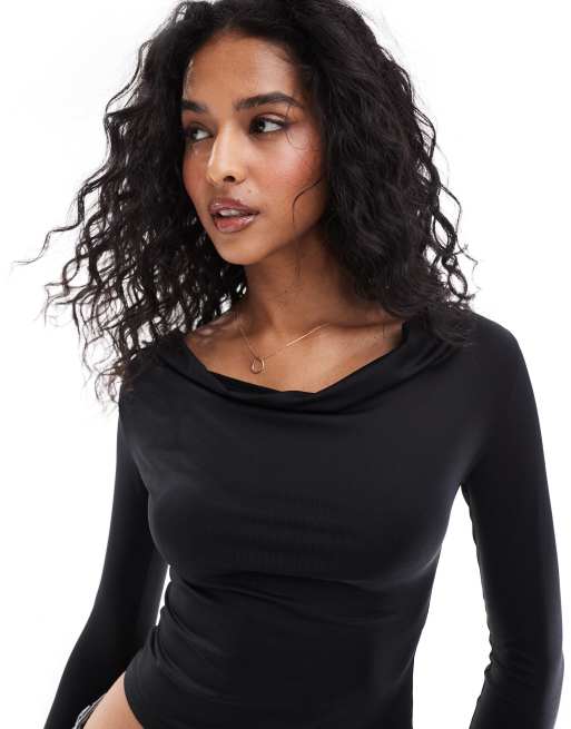 Stradivarius - Top met gedrapeerde halslijn en lange mouwen in zwart