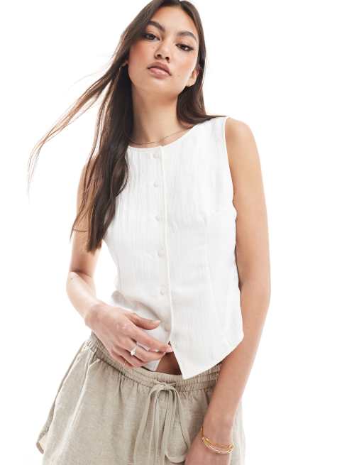 Stradivarius - Top met textuur en knopen in ecru