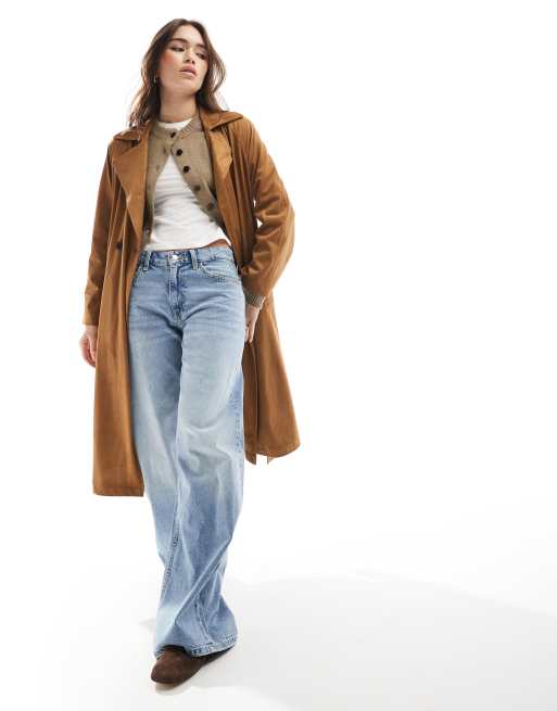 Stradivarius - Trenchcoat van imitatiesuède in camel