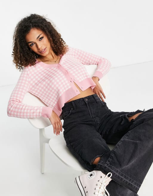 Stradivarius - Vest en cami in roze gingham ruit, co-ord set