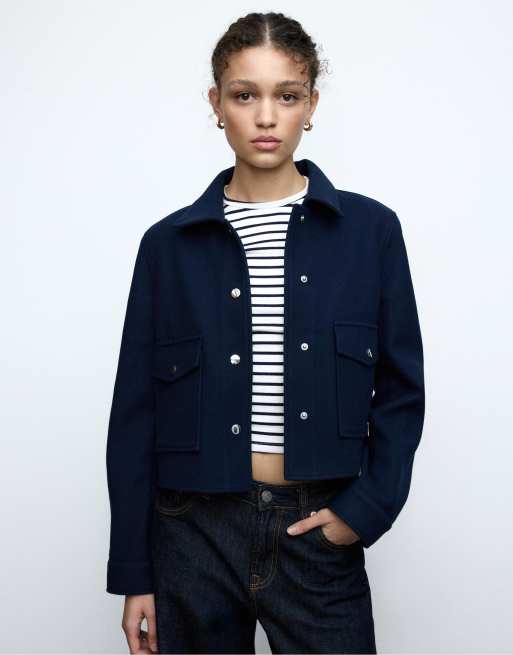 Stradivarius - Zacht kort jack in donkerblauw