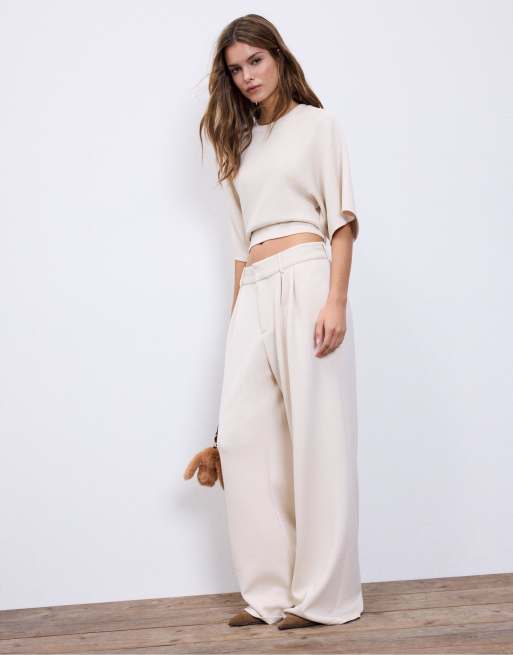 Stradivarius - Zacht T-shirt met korte mouwen in stone