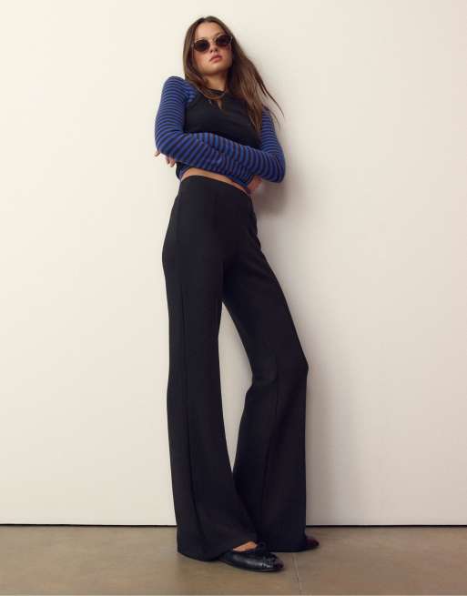 Stradivarius - Zachte broek met wijde pijpen en naaddetail aan de voorkant in zwart
