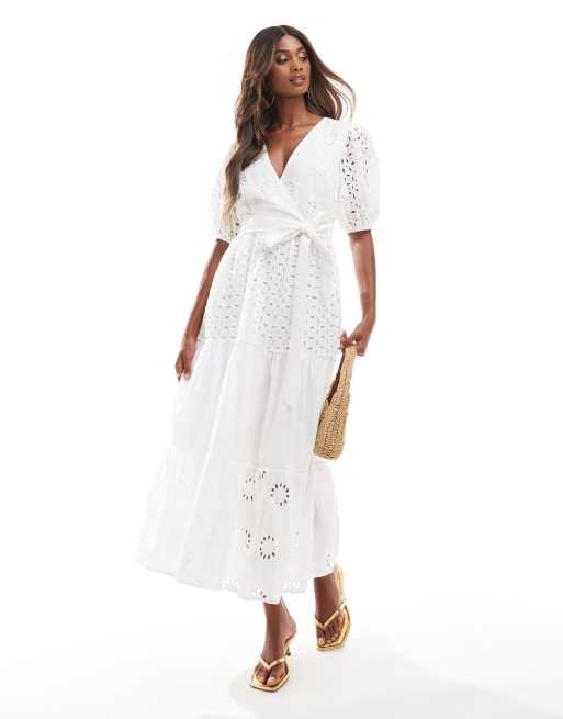 Style Cheat - Maxi jurk met gemengde broderie in wit