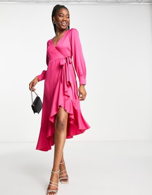 Style Cheat - Midi-jurk met overslag en ruches in roze