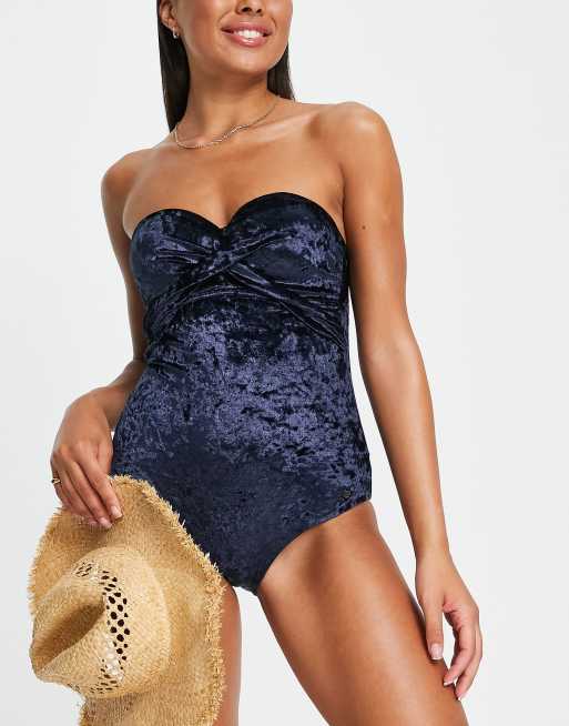 Sunseeker - Fluwelen badpak met gekruiste voorkant en beugels in empire blauw