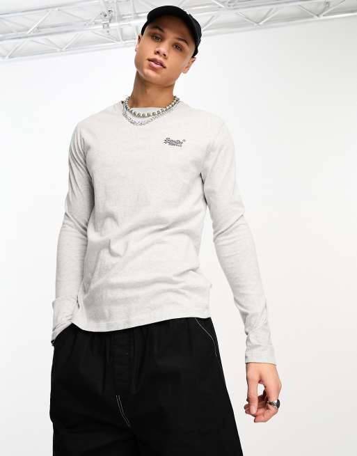 Superdry - T-shirt met geborduurd logo en lange mouwen in grijs
