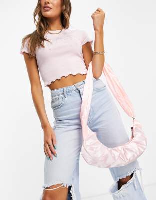 SVNX - Schoudertas van gerimpeld satijn in lichtroze