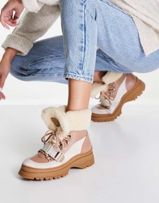 Ted Baker - Mayyzi - Wandellaarzen met imitatieschapenvacht in crème