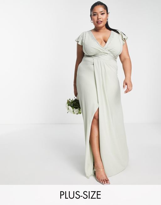 TFNC Plus - Bruidsmeisjes - Maxi jurk met fladdermouwen en ruches in saliegroen