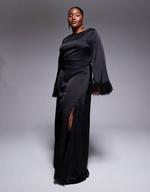 TFNC Plus - Maxi jurk met lange mouwen en imitatieveren aan de manchetten in zwart