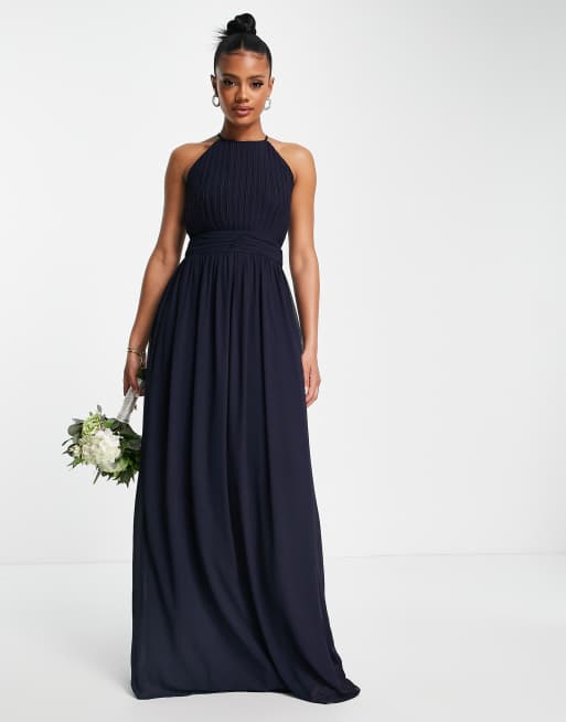 TFNC - Bruidsmeisjes - Maxi-jurk van chiffon met geplooide voorkant in marineblauw