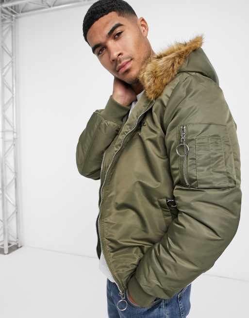 The Couture Club - Dakota - Bomberjack met voering van imitatiebont in kaki