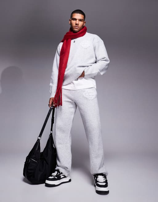 The Couture Club - Gebreide joggingbroek met pluizig logo in gemêleerd grijs, deel van co-ord set