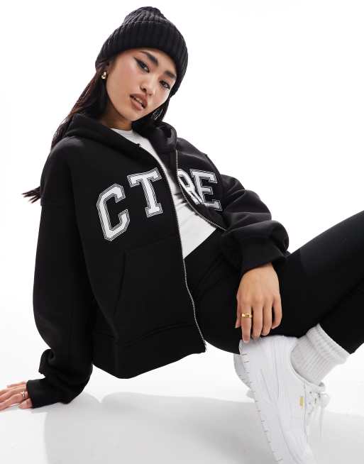 The Couture Club - Varsity hoodie met ritssluiting in zwart