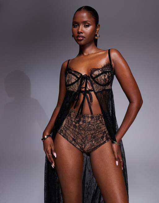 The Dolls House Circa - Cieran - Kanten onderbroek met hoge taille in zwart, deel van co-ord set