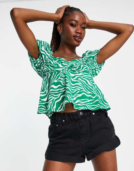 The Frolic - Aangerimpelde blouse met pofmouwen, gekruiste buste en zebraprint in groen