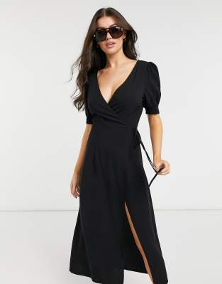 The Frolic - Exclusive - Zomerse maxi strandjurk met overslag in zwart