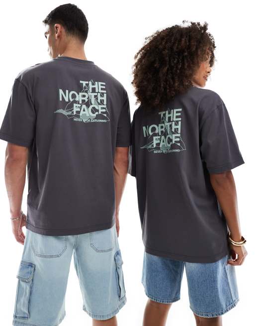 The North Face - Mountain Sketch - Oversized T-shirt met print op de rug in verwassen grijs