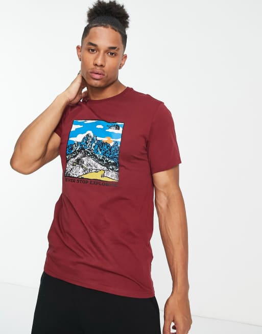 The North Face - T-shirt met grafische print op de borst in bordeauxrood