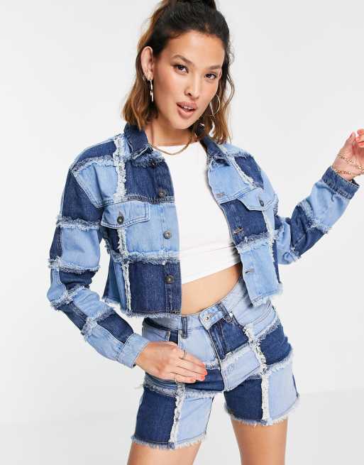 The Ragged Priest - Cropped denim jack met patchwork, deel van co-ord set