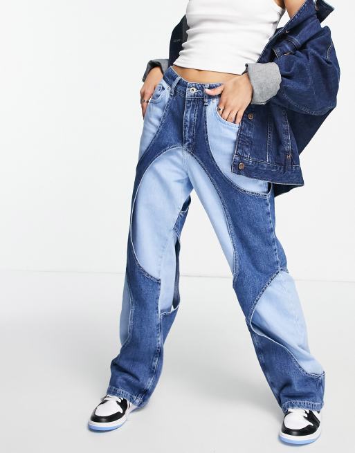 The Ragged Priest - Jeans met hoge taille, rechte pijpen en contrasterende inzetstukken