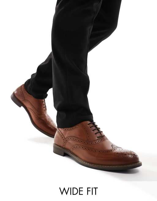 Thomas Crick - Nette leren brogues met brede pasvorm in bruin